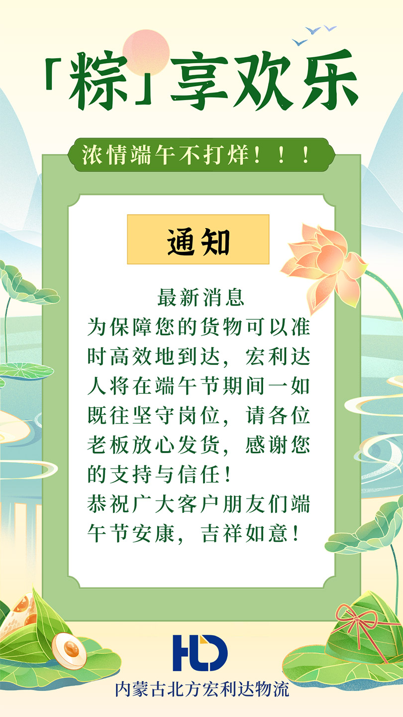 北方宏利達(dá)物流節(jié)日期間正常上班——祝您端午節(jié)安康!